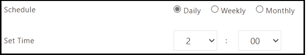 Daily: Select this option to schedule daily Access Devices cleanup. For example, in the image below, the cleanup is scheduled to run every day at 02:00 AM.