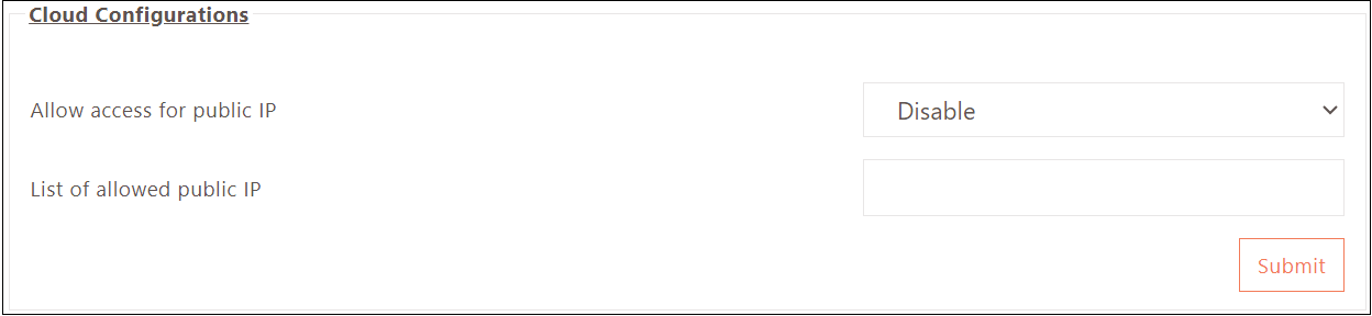 - Provide a List of allowed public IP addresses for access.