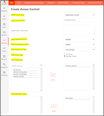 Select Application group: Select the application group in which you have added the Pulse application created in previous steps.