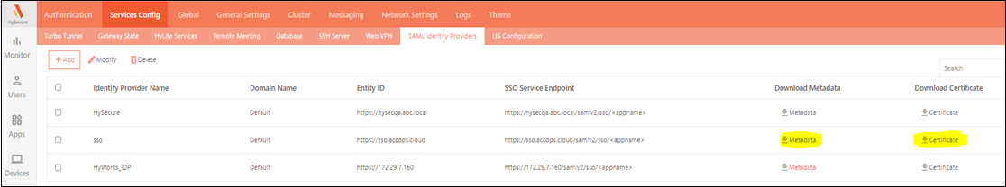 !!!note Upload the SSL certificate on the HySecure gateway before creating the SAML Identity provider in the production environment.