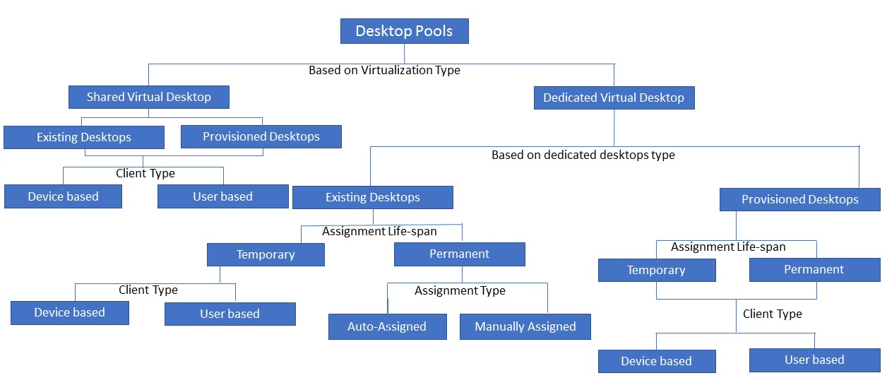 While creating the desktop pool through Dynamic Desktop Provisioning, the Desktop Assignment screen is not displayed. This is because all the cloned VMs are going to have the same configurations and the assignment will be done automatically to the clients i.e. users or endpoints (based on the configured Assignment Type).