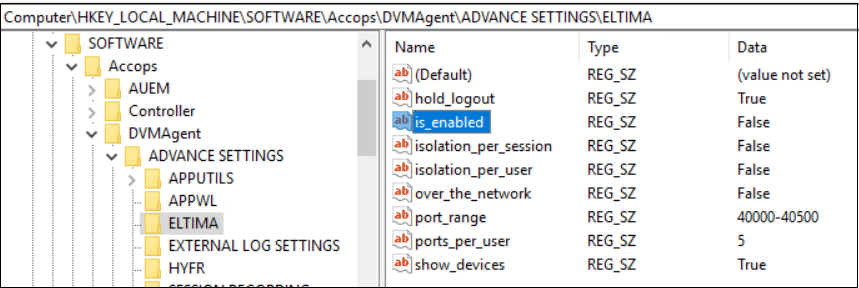 Computer\HKEY_LOCAL_MACHINE\SOFTWARE\Accops\DVMAgent\ADVANCE SETTINGS\ELTIMA