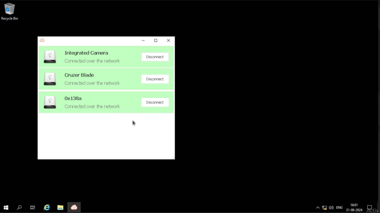 Once logged in, verify the redirected devices in the desktop session’s AUEM system tray.