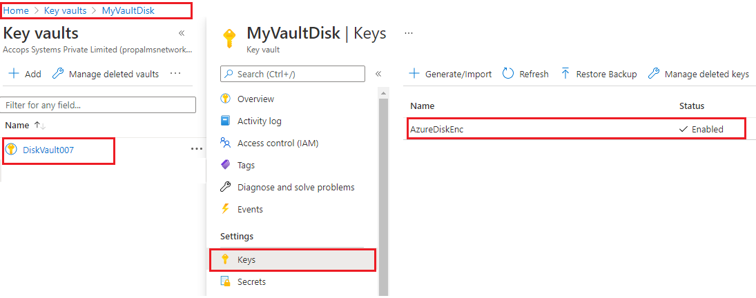 If you are using the Azure Disk Encryption set for the first time. You may need to create a new Azure key vault to store your keys before creating an Azure Disk Encryption set.