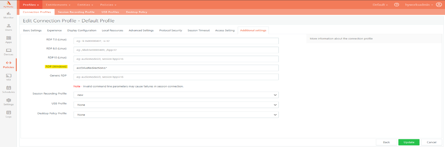 How to enable clipboard redirection: Clipboard redirection can be enabled from the HyWorks Connection profile.
