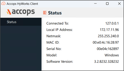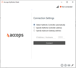 - Connected To: Currently connected HyWorks Controller/ Gateway address.