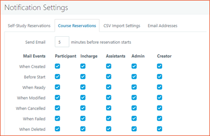 When Ready: When course reservations are ready, send alerts to in-charges, assistants, participants, administrators, and creators.