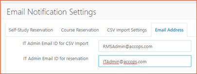 E-mail Address: E-mail addresses for CSV Import and Reservations are to be configured here.