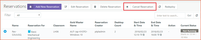 Select the reservation with Current Status as Not Running