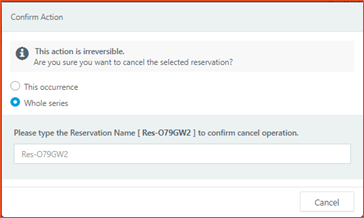 Volatile reservations refer to the reservations where VMs will be deleted after the reservation and for next cycle of reservations fresh VMs will be created. While cancelling next occurrence of volatile reservation following flow will be used: