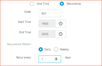 For Recurring schedule > Define recurring pattern as daily or weekly