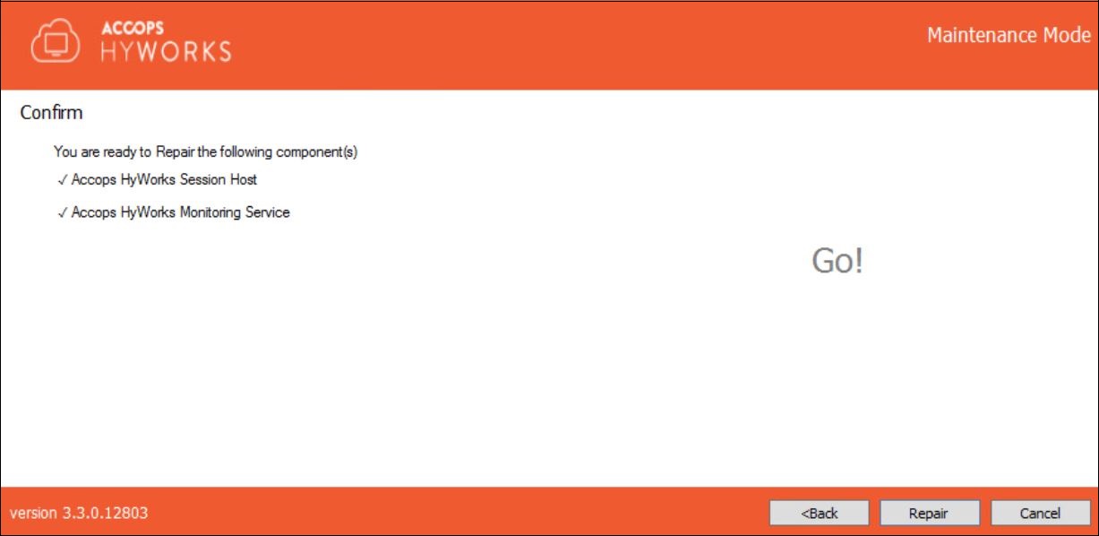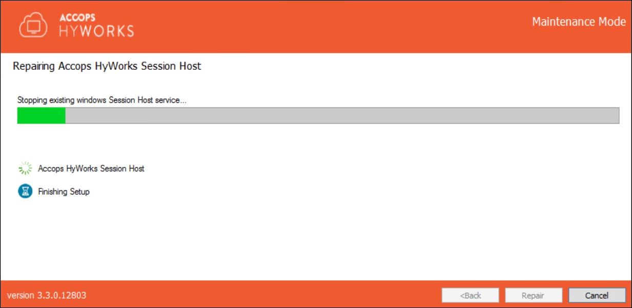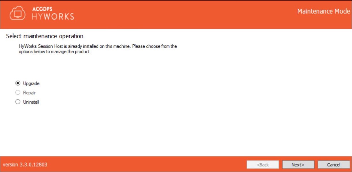 HyWorks Session Host Server Installation wizard will open in the Maintenance mode.