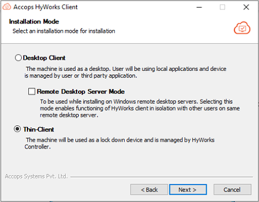 On the Installation Mode screen, select the Thin-Client and click Next.