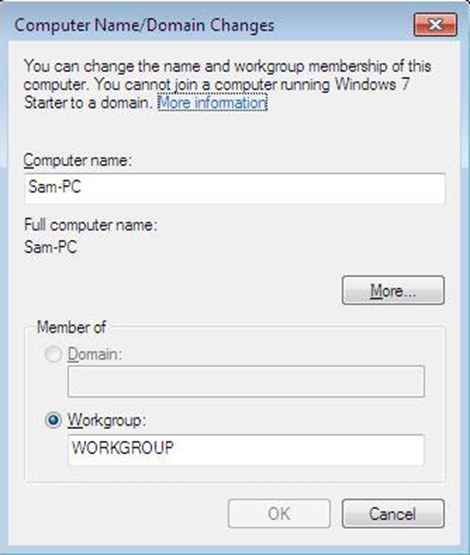 Under Computer name, Domain, and Workgroup settings, click Change settings. If you're prompted for an administrator password or confirmation, type the password, or provide confirmation.