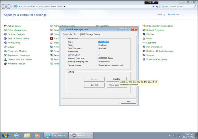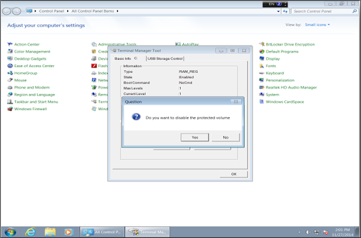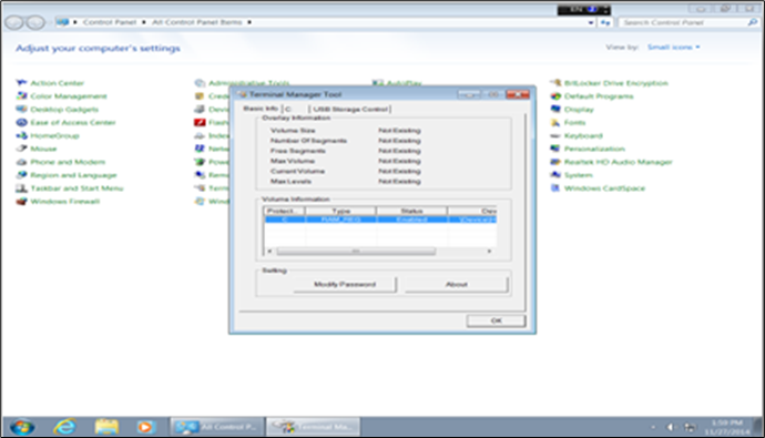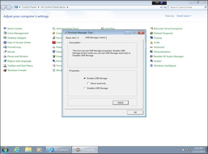 Go to the USB Storage Control tab in the Terminal Manager window and make necessary changes (Enable/ Disable USB Storage)