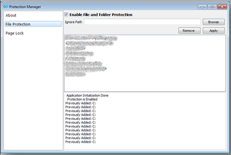 File Protection is used for locking all drives; it is enabled by default, and a few required paths are added to the exceptions list.
