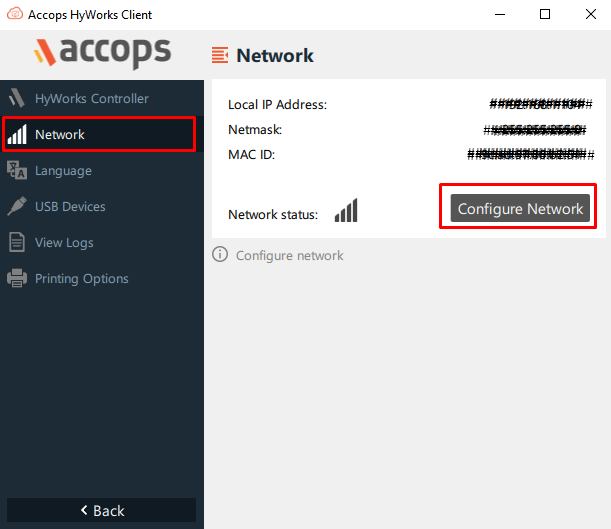 Select "Network" option from the left side pane, then click on "Configure Network".