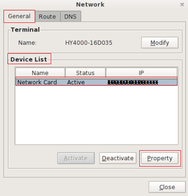 In General TAB, select "Network Card" from "Device List" and click on "Properties" to configure the static IP Address.