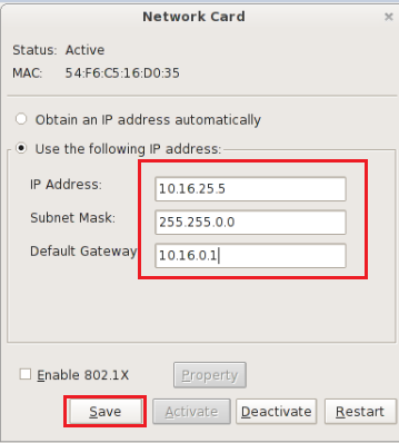Assign Static IP Address and click on save, confirm the prompt message for IP Configuration.