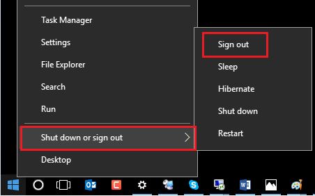 To Logout from VDI Please Right Click on Windows logo and then click on "Sign Out"