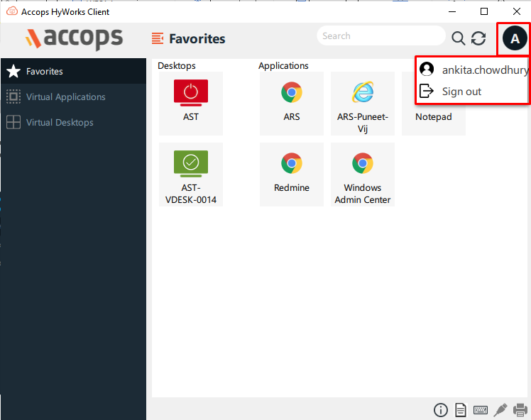 To successfully logout your VDI session, please click on User Name icon and then click Sign Out.