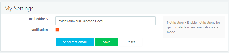 Click Save to save the configurations. If this user is part of any reservation, the user will be notified on the configured e-mail.