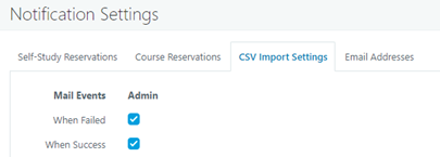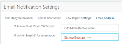 E-mail Address: E-mail addresses for CSV Import and Reservations are to be configured here.