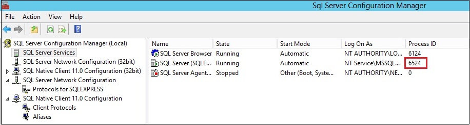 Note down the process ID of the SQL Server instance displayed in the right pane, for example, 116 in the above image.