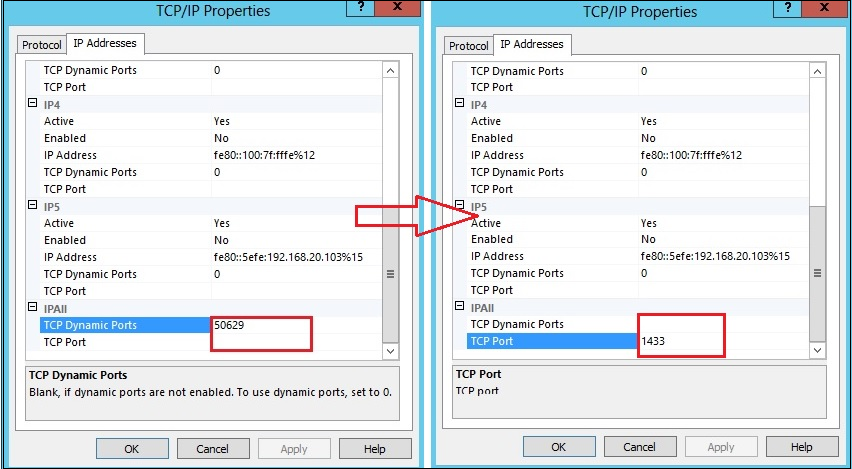 Configure 1433 or any other port as per the requirement for TCP Port.