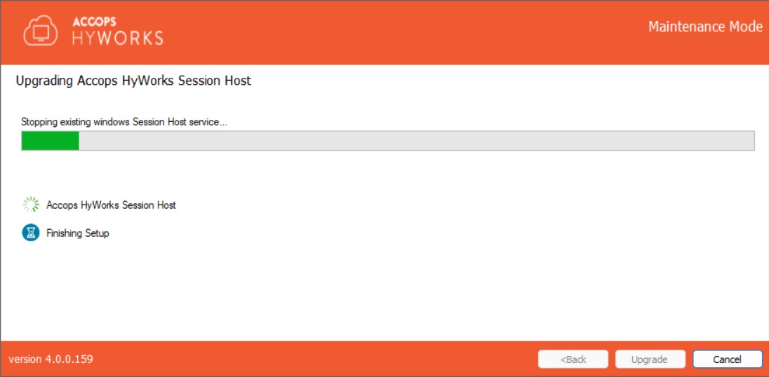 The Session Host server can be upgraded before or after upgrading the HyWorks Controller. However, it is recommended to check the compatibility between the HyWorks Controller and Session Host Server before upgrading.