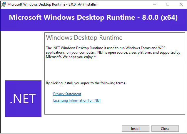 .NET Desktop Runtime 8.0 Installation