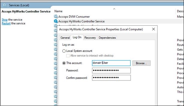 Install the controller service using this account (not the Local System account)