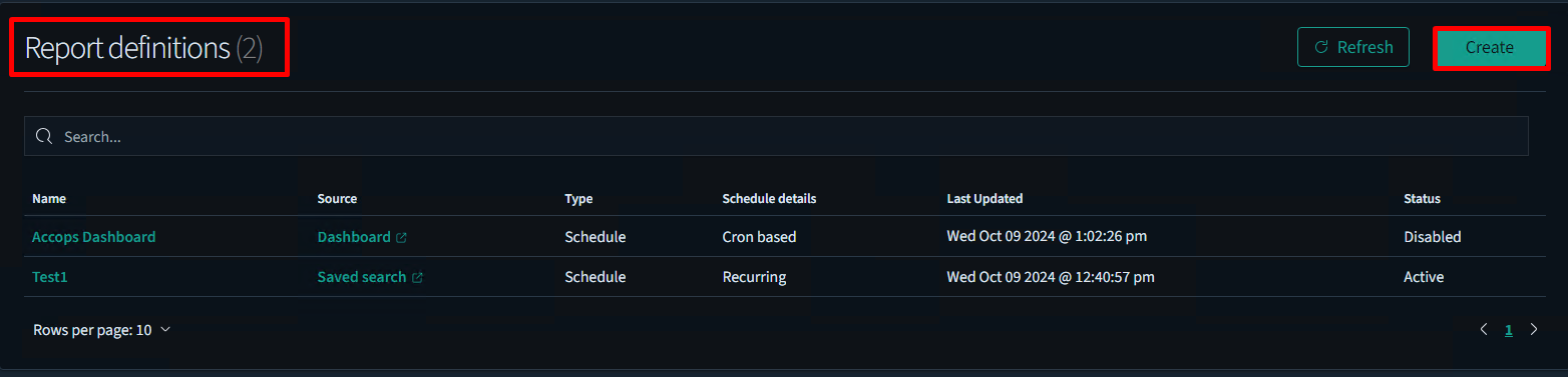 For simplicity, 2 template schedules, each representing saved searches and dashboards, have been provided by default. Modify these schedules as needed. More details about the different sections of each schedule type are listed below: