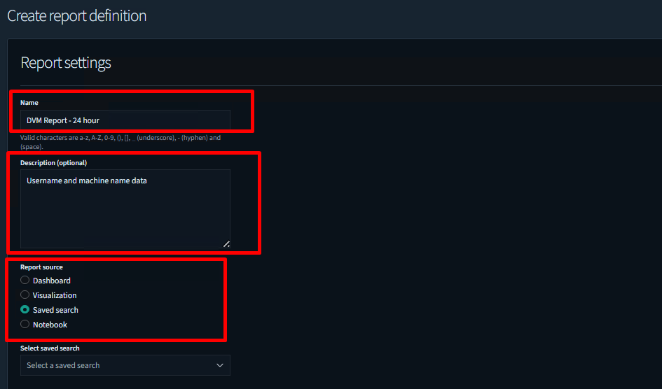 Add name for report and description. Select the report type as per the requirement. Here we are generating for the Saved search.