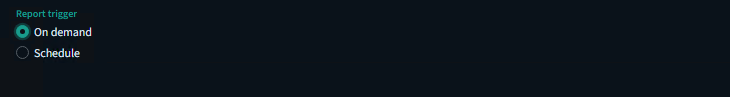 On demand: On-demand reports can be downloaded as needed. They will not generate daily or at any regular interval. We can download them when required, and the data will be fetched according to the time specified in step 5.
