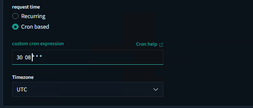 All cron expressions entered here follow the Universal Time Coordinate (UTC) time zone. Please keep this in mind when scheduling/identifying cron expressions. For India, we are 5 hours and 30 minutes ahead of UTC. Hence, please set the cron expressions appropriately.