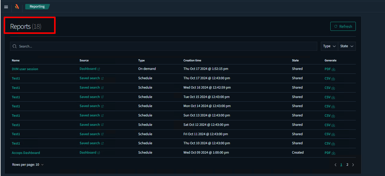 In the Reporting tab, under Reports, we can view the generated reports. Here, we can download reports by selecting the Generate option. On-demand reports are created when we download them, while scheduled reports are generated according to the set time and can also be downloaded from this section. To select a specific report, use the custom date feature.