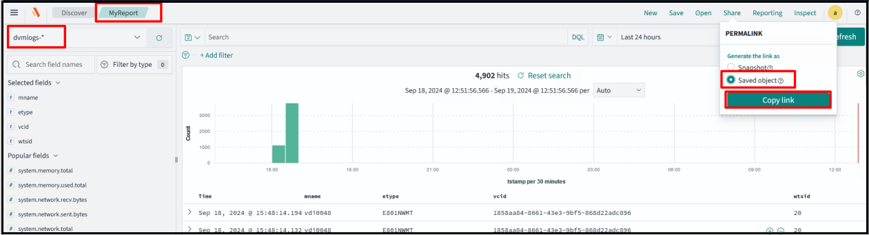 kibanaRelativeUrls: Relative URL is the unique link of the saved search, which is generated and displayed on the browser.