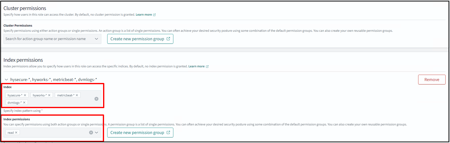 Add an index that you want to show for the user who can only read the data for the specified index. Also, add Index permissions as read.