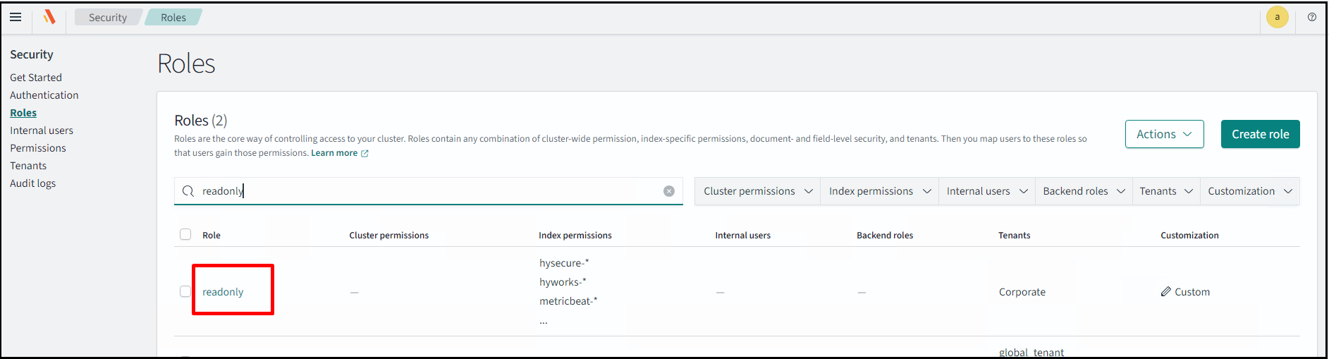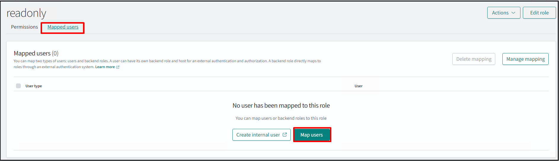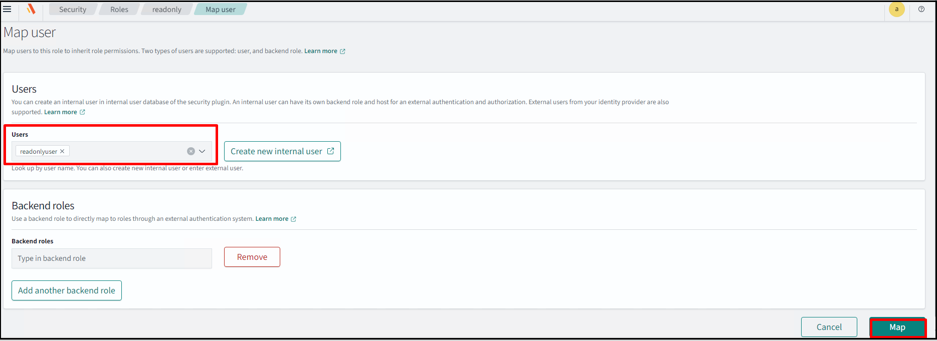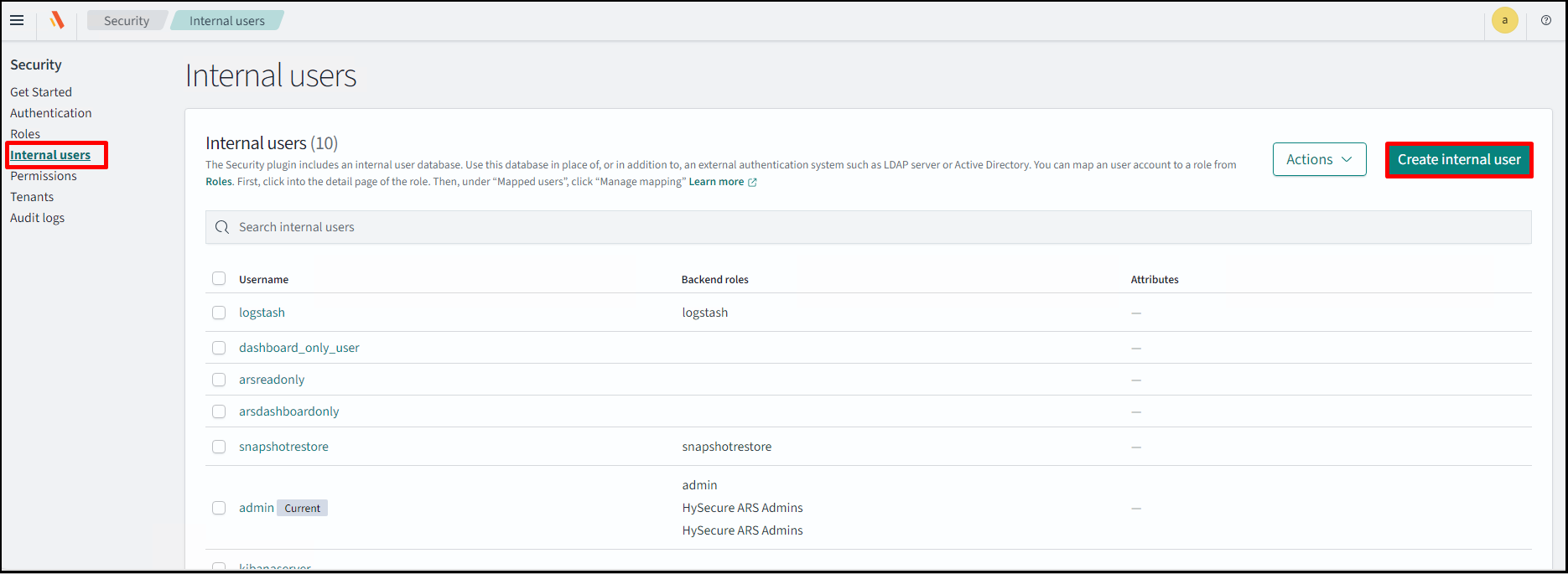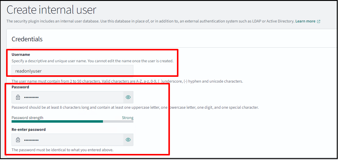 Now, create a read-only internal user. Navigate to Security > Internal users > Create internal user.