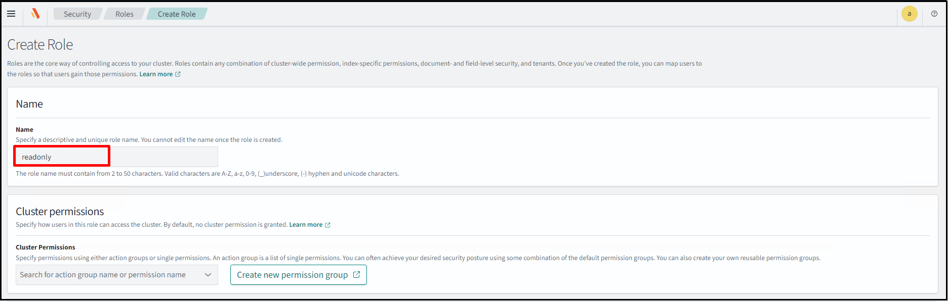 Assign a Name to the role.