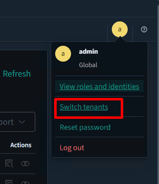 Select the other space that is created where you want to import. To change the tenant, click on the logged-in user profile icon and select Switch tenants.