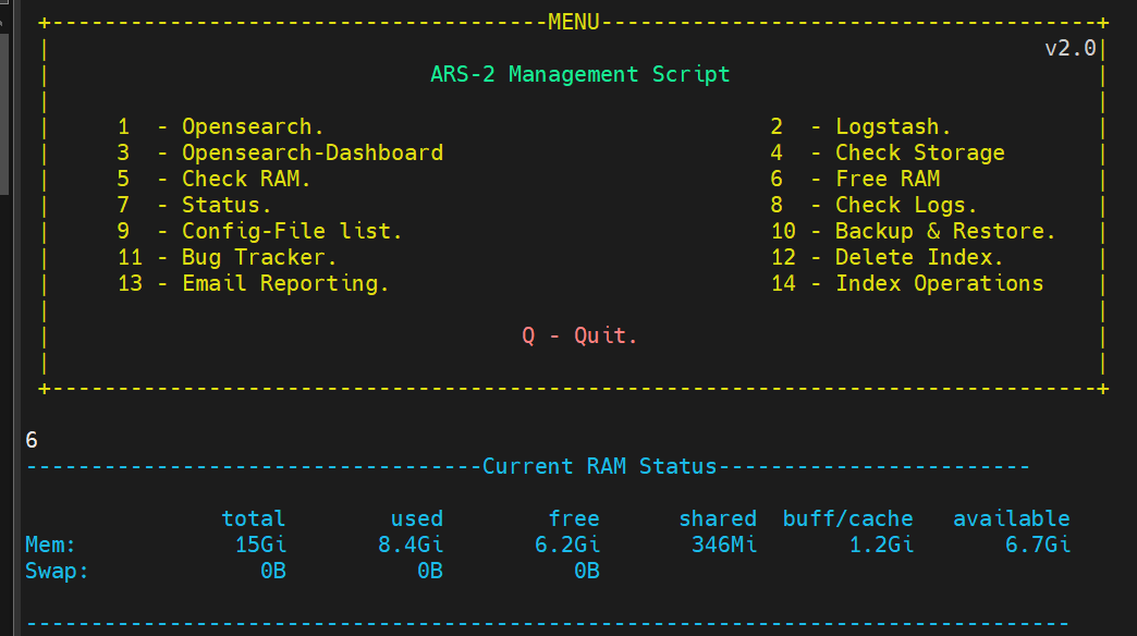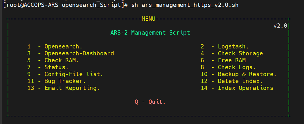 For Opensearch, select option no. 1 from the ARS-2 Management Script MENU.