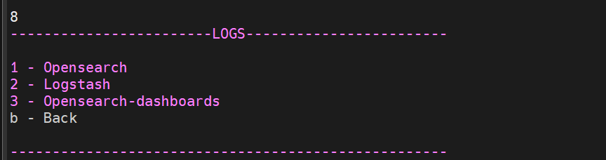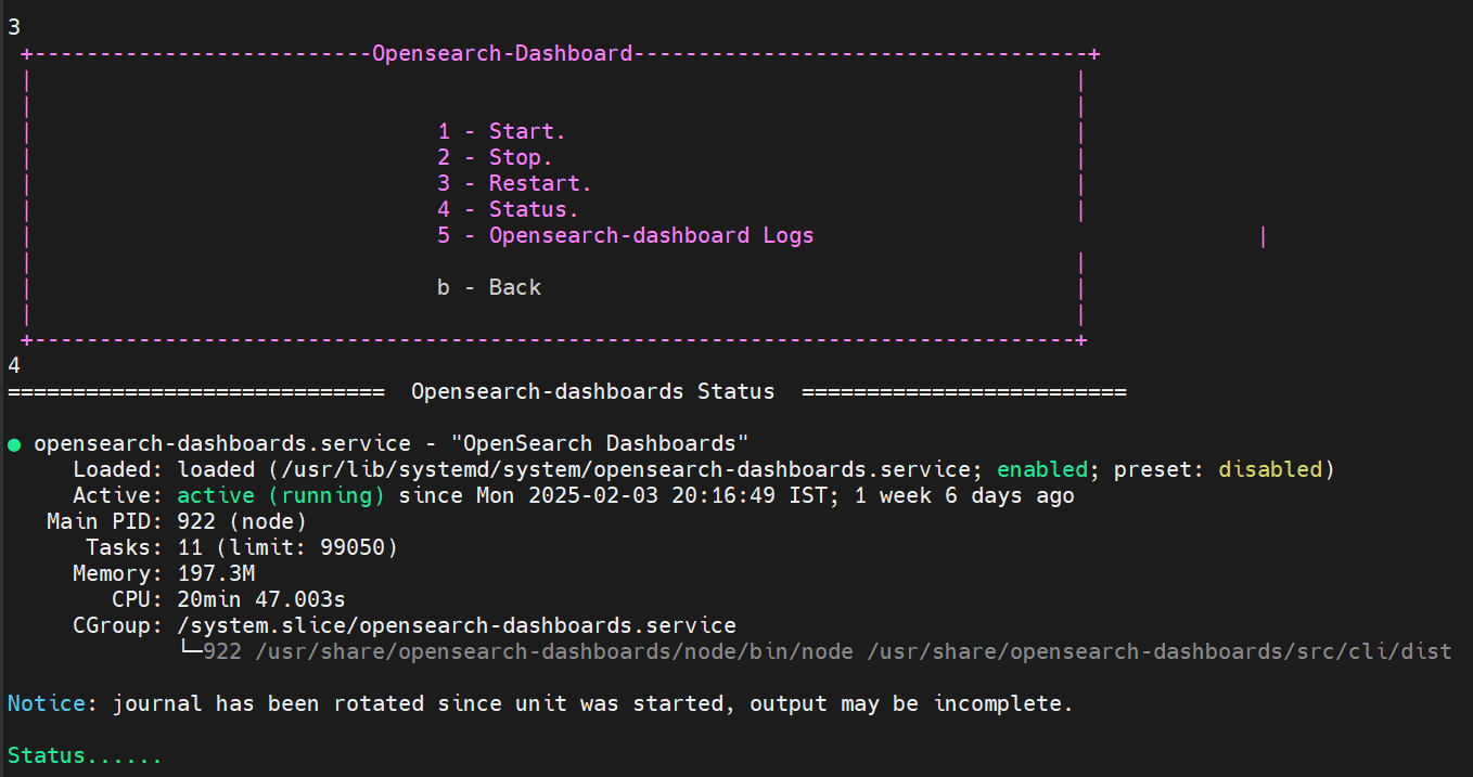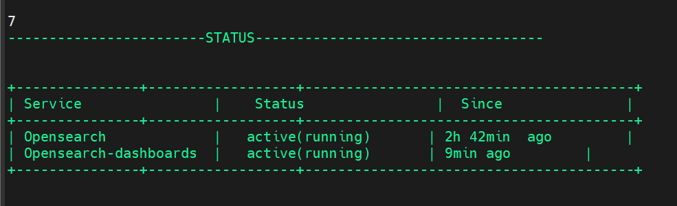 This option allows us to check the status of both Opensearch and Opensearch Dashboard simultaneously, while also displaying the uptime of each respective service.