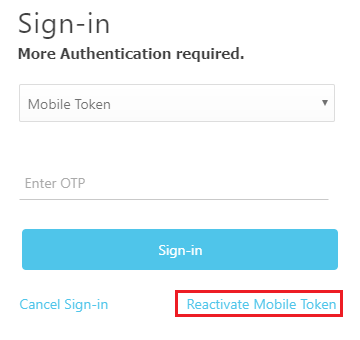 When user select mobile token on web portal user will get option for reactivating the mobile token. If a user wants to reactivate mobile token, then user need to click on this link "Reactivate mobile token" and get select OTP token type to get OTP.