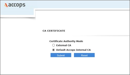 In the Certificate Authority Mode, by default the Default Accops Internal CA is selected. This enables the server to act as the Certificate Authority. Select External CA if you want to use a Third Party Certificate Authority. The CA that is chosen will help in authorizing the certificate that is to be created for the Security Officer.