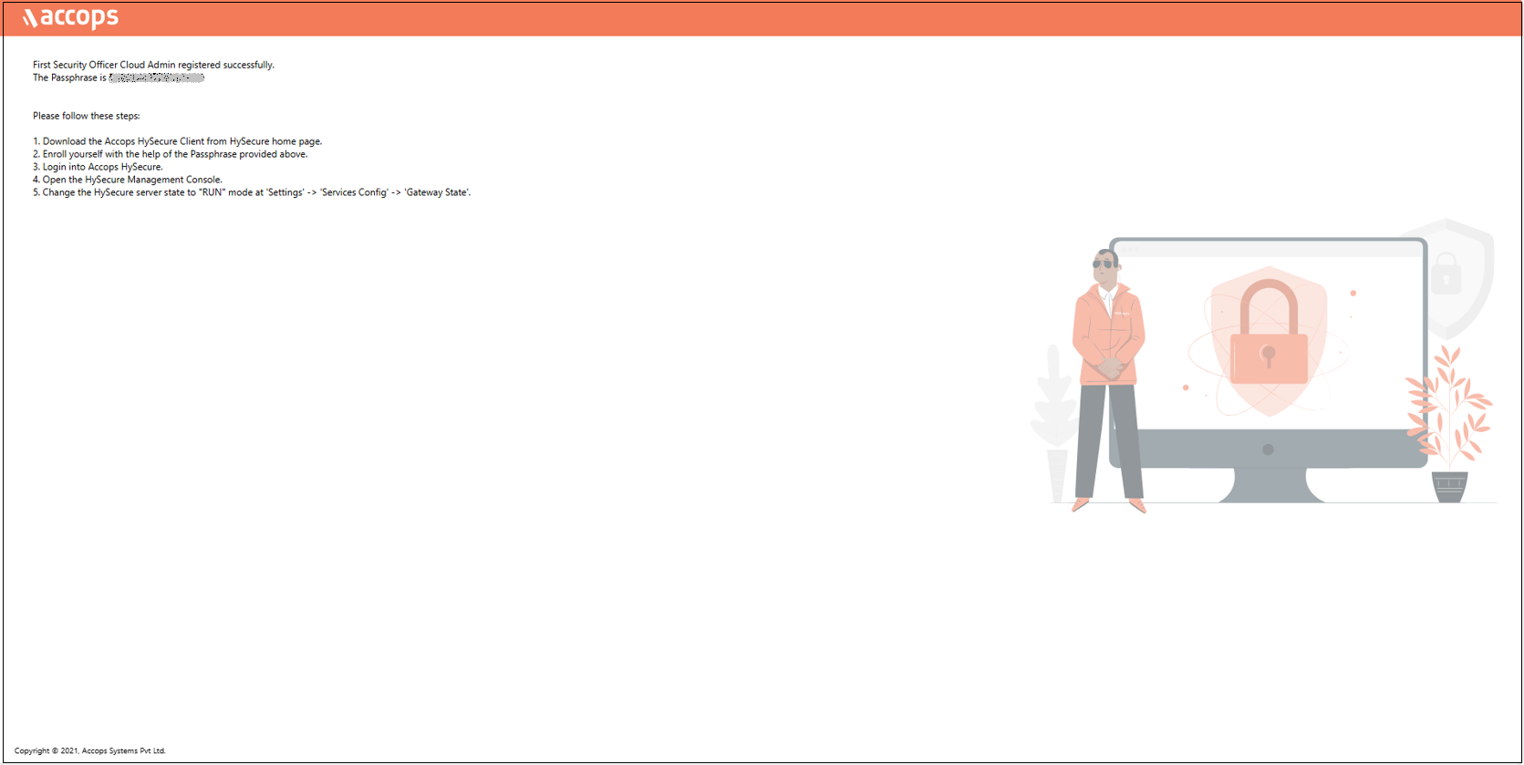 9. A success message and the Passphrase will be displayed. Copy the Passphrase before closing the browser window.