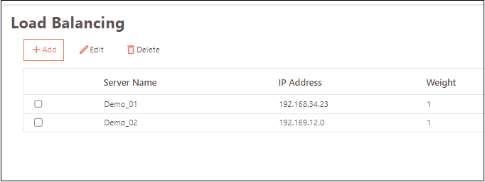 | Weight | Displays the Weight-based load balancing assigned to each server, determining its share of the load. Equal weights mean equal distribution. A weight of 1 for one server and 2 for others means the former bears half the load as others. |