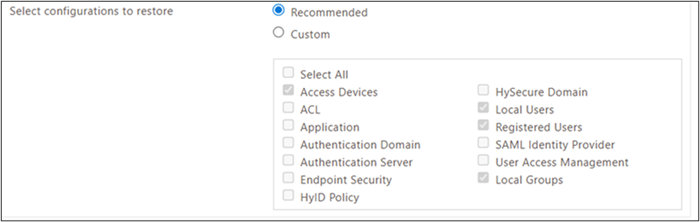 Recommendation: Retain the default configuration unless HySecure configuration expertise is available. Modifying the Advanced Settings requires a deep understanding of backup/restore mechanisms.
