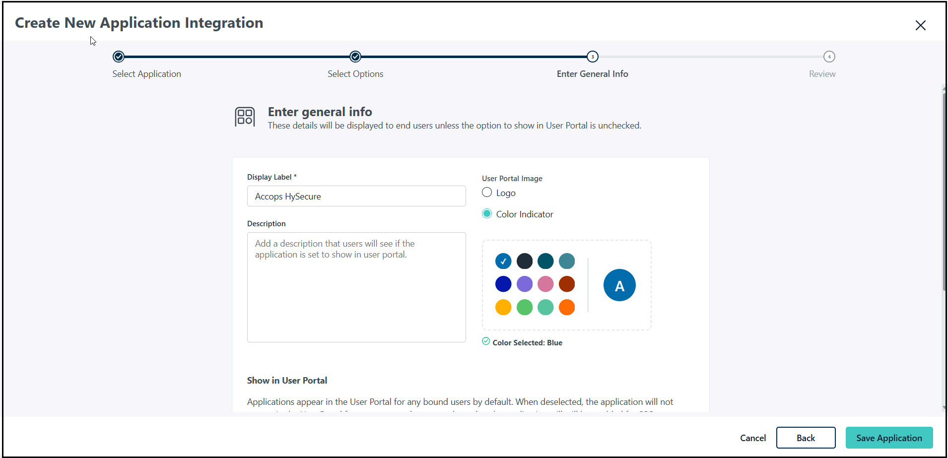 Enter general information. Enter a user-friendly display name to identify the application for the user.